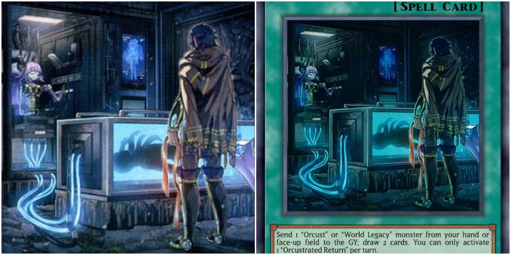 „Orkustrierte Rückkehr“ kann also nicht nur „Orkust“ -Monster auf den Friedhof legen (oder ein „World Legacy“ -Monster), sondern ermöglicht es dir auch, mit dem Draw 2-Effekt einen Vorteil aus diesem Setup zu ziehen, um zu deiner guten Normalbeschwörung zu gelangen. „Orkustrierte Rückkehr“ ist der beste Archetyp für Draw 2 Zauber, da er so viel für das bereits großartige Deck tut.