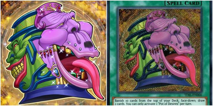“ Pot Of Desires“ war bei seiner Veröffentlichung eine ziemlich kontroverse Ergänzung des Spiels, bei der sich die Leute fragten, ob die Kosten für das Verbannen von 10 verdeckten Karten den Draw 2-Effekt wert waren. Wie die Zeit gezeigt hat, ist es sehr viel.