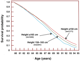 vaikka nämä ovat ääriesimerkkejä, yleisväestössä esiintyy myös pituustrendi, joka johtaa eliniän lyhenemiseen. Esimerkiksi pidempi nainen sairastuu todennäköisemmin syöpään myöhemmässä, vaihdevuosien jälkeisessä elämässä. Whitehallin virkamiehille tehdyssä tutkimuksessa height todettiin erinomaiseksi korrelaattoriksi syövän, aivohalvauksen ja sydän-ja verisuonitautien sekä lopulta kuoleman riskiin.