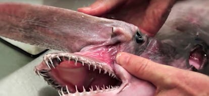 Les requins gobelins tirent leur nom de, eh bien, à l’air assez horrible. L’animal des grands fonds utilise son apparence laide à son avantage, détectant sa proie avec son museau et l’attrapant avec ses dents fines et pointues.