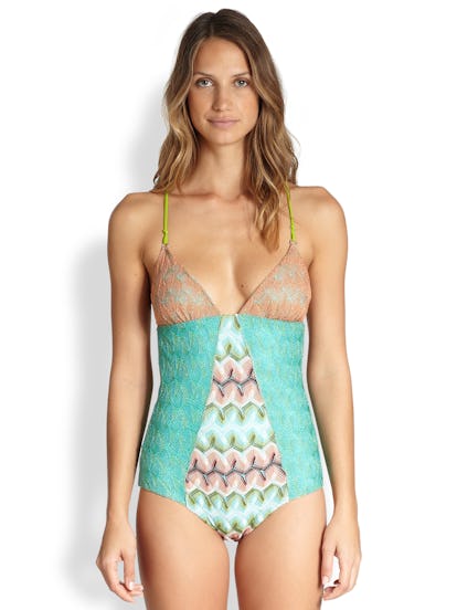 Missoni Costume intero Lurex Patchwork reversibile, $685, Saks Fifth Avenue