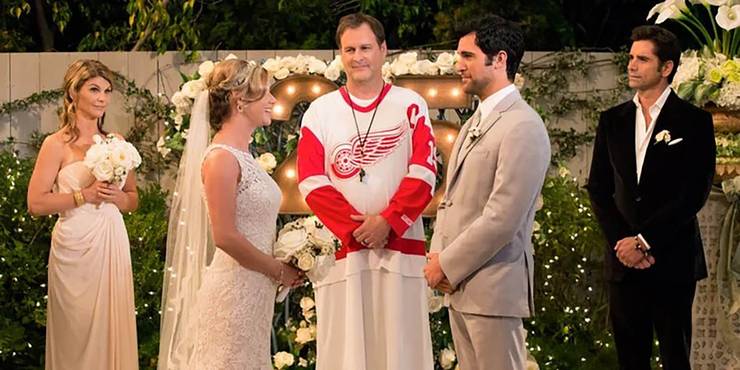 Best kjent for å spille Tante Becky på serien, gift Med Stamos’ Onkel Jesse, Loughlin gjentok sin rolle for De fire første sesongene Av Fuller House, om hennes karakter vil bli skrevet ut av den siste sesongen på grunn av skuespillerens engasjement med college innleggelser skandalen som har rystet nasjonen.
